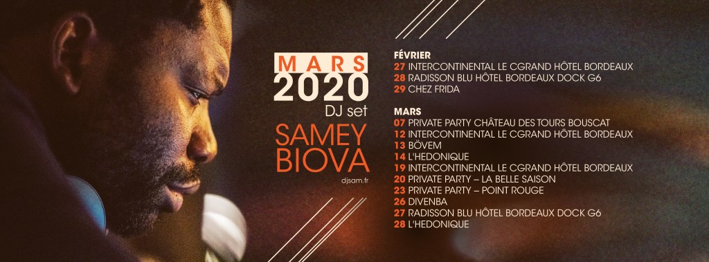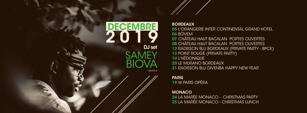 Depuis 2014, Samey Biova est un DJ Bordelais qui anime des soirées dans des hôtels, restaurants, lounge bars, châteaux, et de nombreux autres types de lieux.